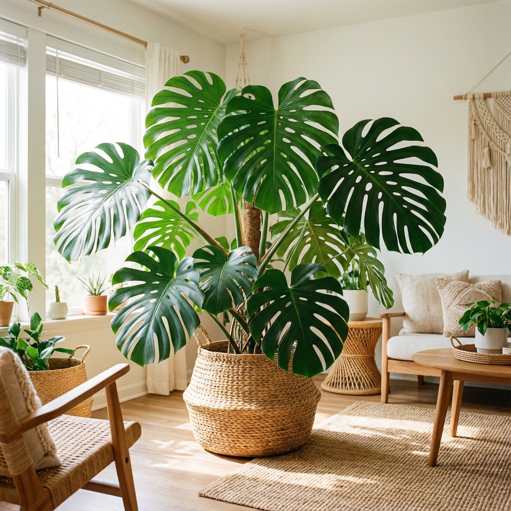 The classic Swiss Cheese Plant. Features large, fenestrated leaves that create a dramatic tropical look.
